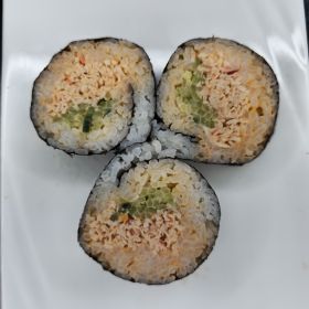 California roll with a fiery twist, featuring spicy crab meat and cucumber.
