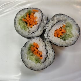 Cucumber, avocado, and carrots in seasoned rice and nori.