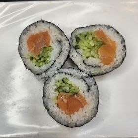 A delectable fusion of fresh salmon (or tuna) with cucumber, rolled with seasoned rice and nori.